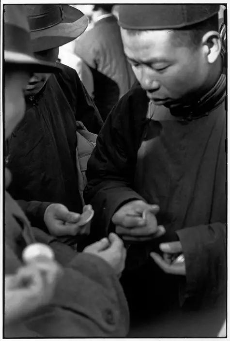 ▲国民党军队撤退和解放军到来的大约八天前,北平的生活是平静的。一个街头商人高兴地遇到一个朋友,这个朋友刚刚买了一块棉花布料。尊敬、仁慈和平和——这些中国人在任何情况下都不愿意丢掉的美德——在中国漫长历史中最重大的改变之一的前夕进行着。